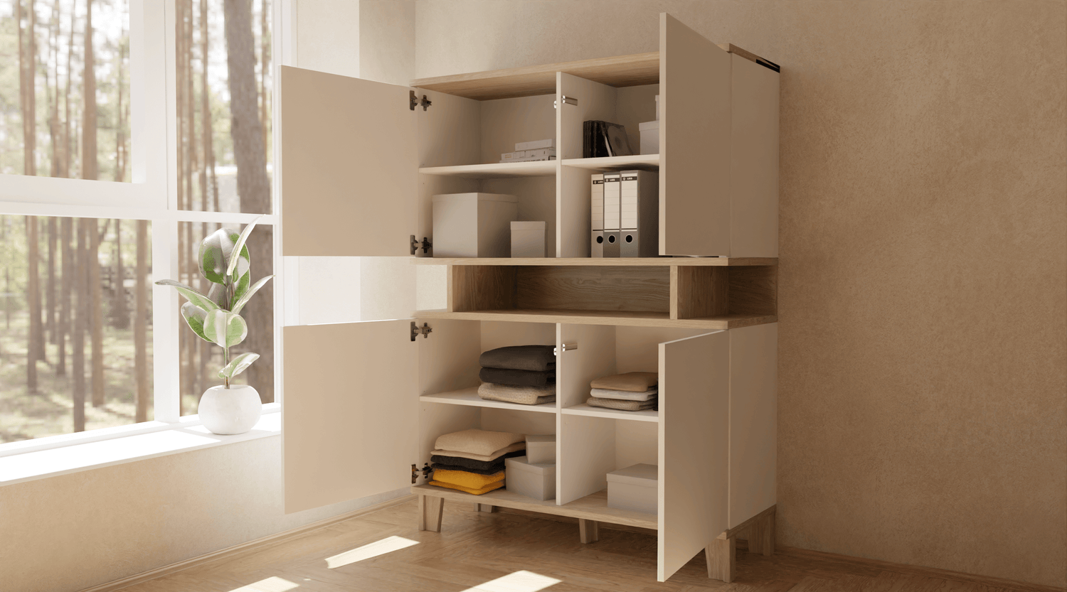 Dzięki swojej wysokości komoda oferuje wyjątkowo dużo miejsca do przechowywania, sprawdzając się w salonie, jadalni czy domowym biurze. To funkcjonalny mebel, który jednocześnie stanowi wyrafinowaną ozdobę wnętrza.