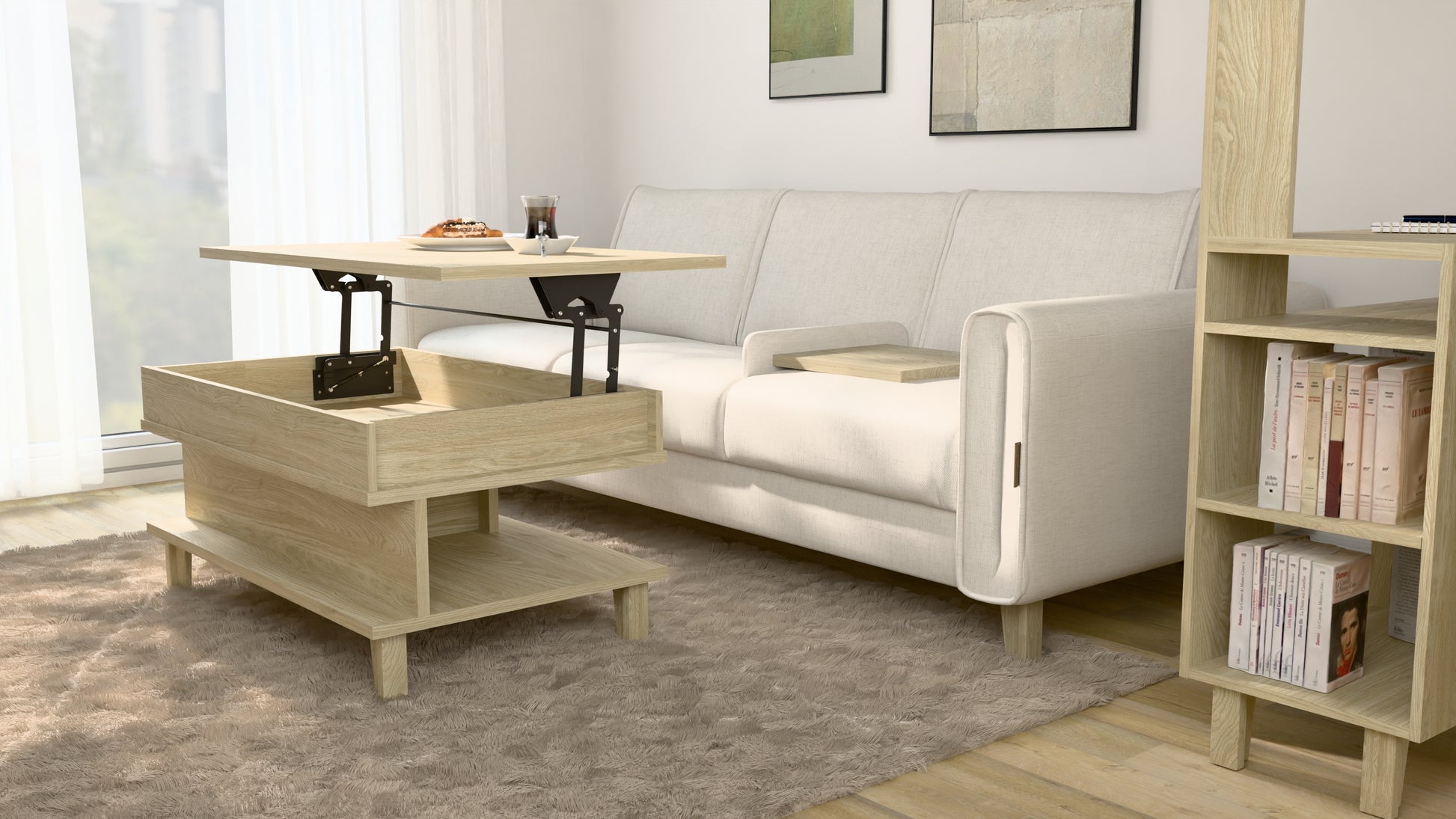 Stolik kawowy z podnoszonym blatem: dąb olejowany
